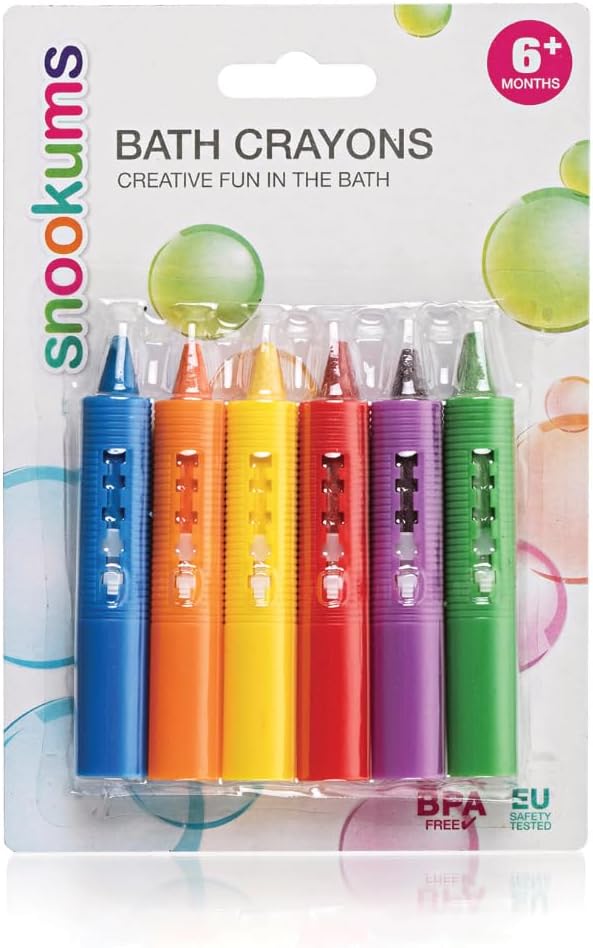 Snookums 6 Piece Bath Crayon Set | Non Toxic, Fragrance Free | Bath Toys for Bathtub and Shower | Won’t Disintegrate in Water | Art Project for Kids and Toddlers | Great Gift